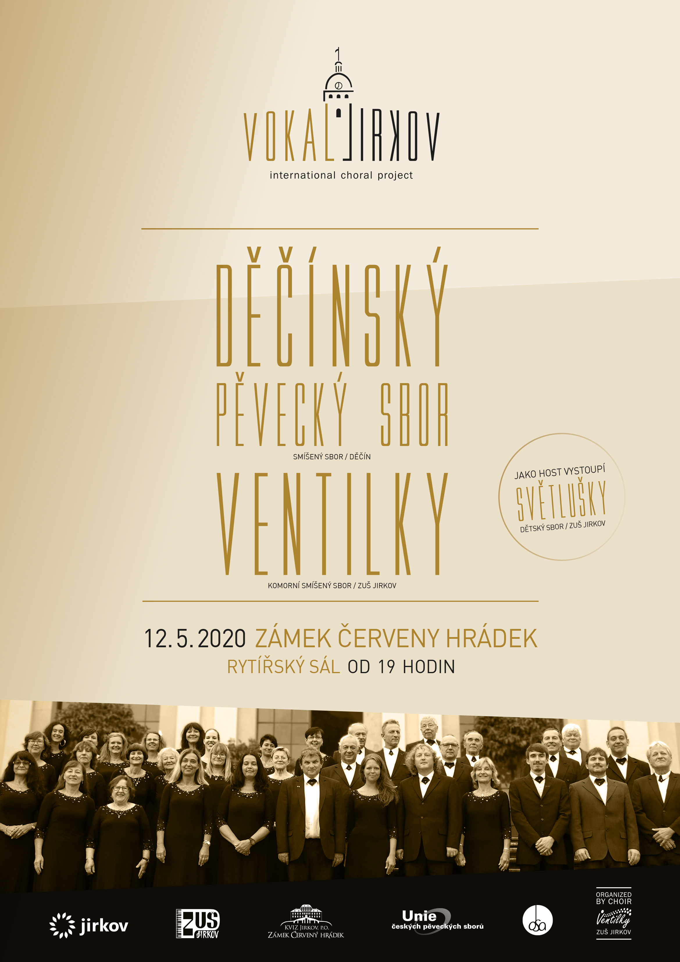 Děčínský pěvecký sbor a Ventilky budou koncertovat v rámci sborového setkání VOKAL JIRKOV v Rytířském sále Zámku Červený hrádek. Jako host vystoupí dětský sbor Světlušky ZUŠ Jirtkov.