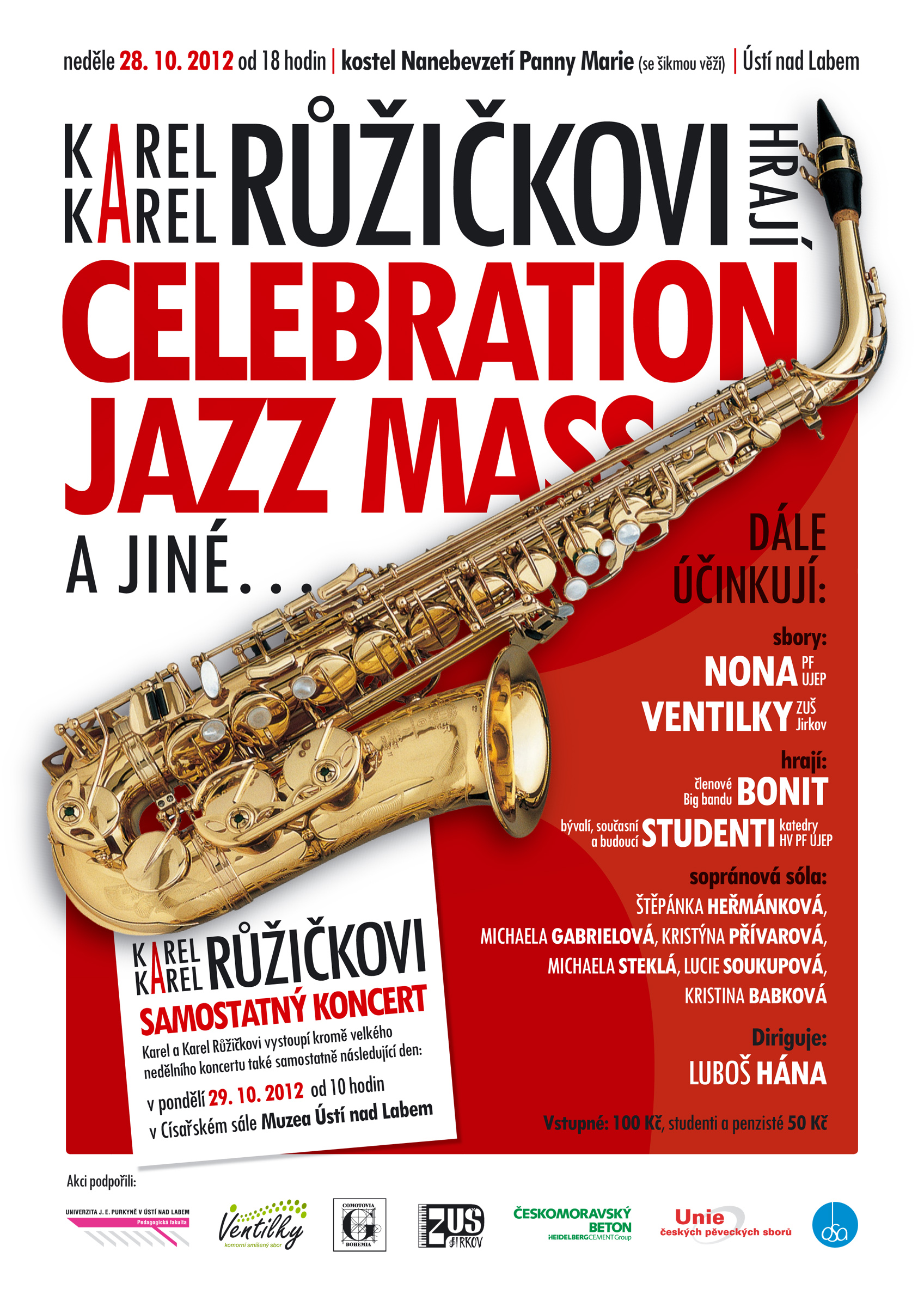 Karel a Karel Růžičkovi vystoupí kromě velkého nedělního koncertu také samostatně následující den: v pondělí 29. 10. 2012 od 10 hodin v Císařském sále Muzea Ústí nad Labem.